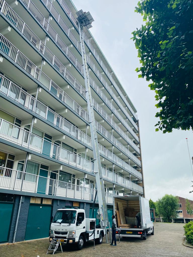 Onze standaard verhuisliften bereiken 27 meter hoogte.